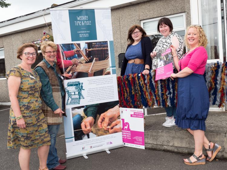 Project Manager, Artist Katrina Hughes, Artist Mary O’Rourke, Bridget O’Loughlin, Kildare HeritageOfficer, Carolann Courtney, Kildare Arts in Health Officer, and Shann Morris, Manager of Naas Day Care Centre, at the ‘Weaving Time & Place’ Contemporary Arts Project at Naas Day Care Centre, A Heritage Week Event, pictured Tuesday August 22.