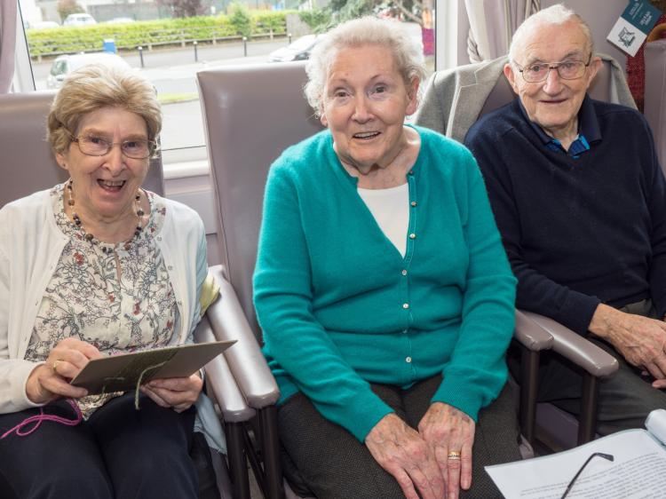 Phil Fitzgerald and Brigid Hogarty with Mae O’Neill, Carer Naas Day Care Centre, at the ‘Weaving Time & Place’ Contemporary Arts Project