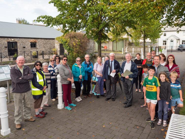 Paddy Behan and Ger McCarthy (centre) of Naas Local History Group with a group of local people at Naas Harbour who turned out for for the Naas Canal Walk, Monday evening August 21, one of the events for Heritage Week 2017