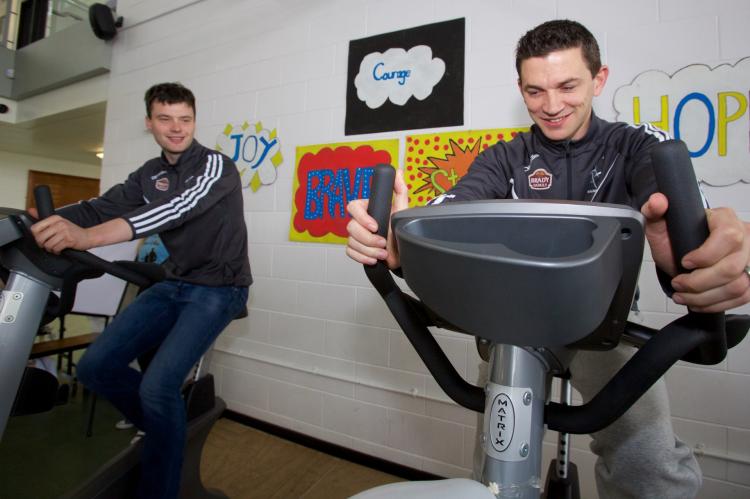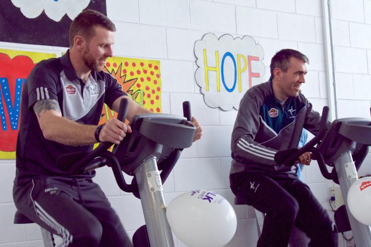 Former Kildare footballers Johnny Doyle and Ronan Sweeney took to the bikes at a charity event at Kildare Town Community School recently.