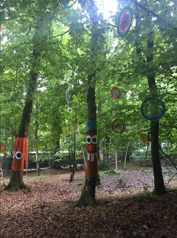 The nun from Newbridge helped crochet some beautiful jumpers for the trees in the Hazel Wood.