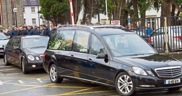 The hearse bearing the remains of Yvonne Slaughter leaves the church today in Naas