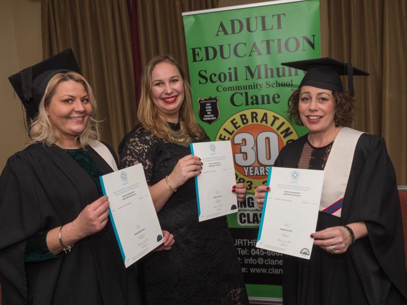 Hundreds of adult education graduates gathered at the Westgrove Hotel on Wednesday, November 28, to receive certificates following their various adult education courses at Scoil Mhuire in Clane.