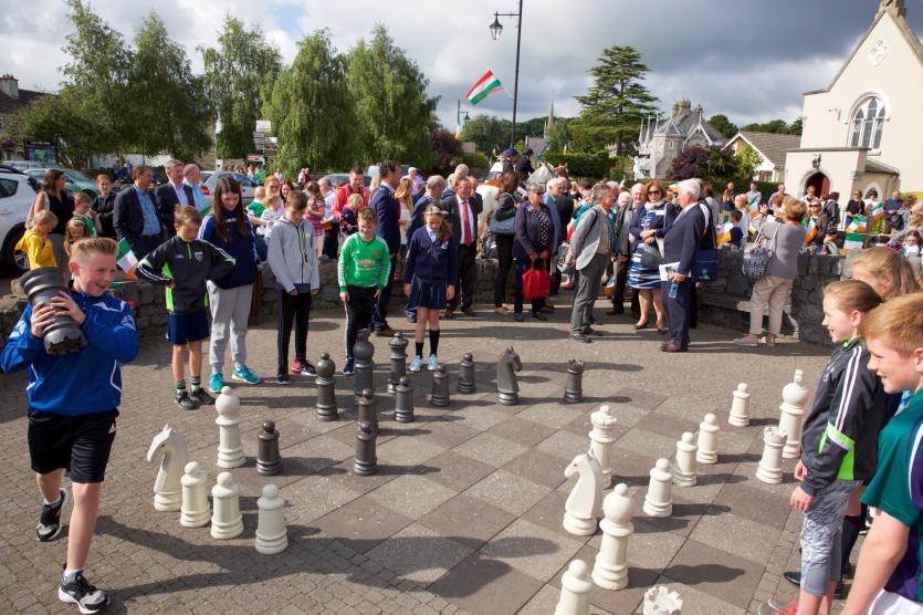 The group also visited the K Club where they were hosted by manager, Michael Davern, and given tours of the house and grounds. The Civil Defence organisation provided lunch at the hall. Among other events, an outdoor chess game was organised at the village and a presentation was made. Long time chess fan, Jack Hennigan, who promoted the game locally, was present.