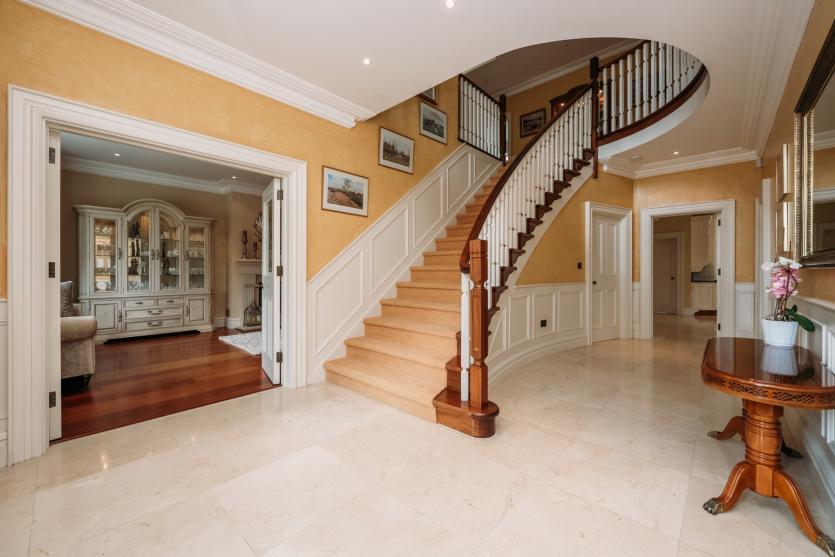 The first floor accommodation consists of three bedrooms, two of which are en-suite. The master bedroom suite is an expansive, light filled room with bay windows and comes complete with a large double walk in wardrobe and exquisite marble ensuite. A family bathroom and walk in hot press completes the first floor accommodation. There is also an over porch balcony to the front just off the landing area.