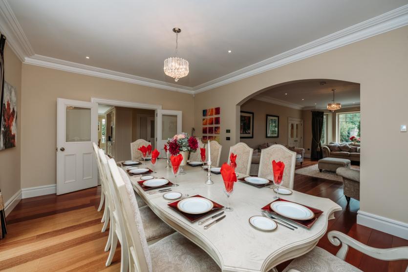 The family room also has access to the veranda which overlooks the wonderful patio and parterre garden, and in turn leads to the remaining garden area to the rear which are just a joy to behold, lush with colour and beautifully landscaped. There is also a utility and guest toilet on the ground floor level, whilst the impressive front entrance porch provides a large bright space in the hallway.