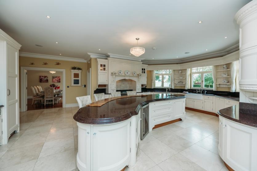 Central to this home is a bright and spacious, family friendly open plan kitchen/breakfast room with solid poplar hand painted inframe cabinets, a large distinctive island, an array of appliances, crema marfil marble floor tiles with access to the south facing veranda via French doors.