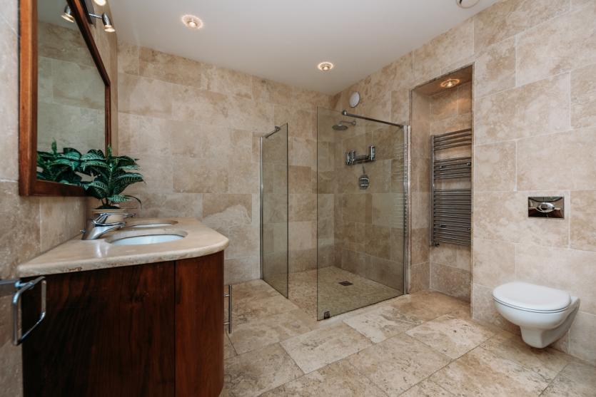 All external windows and doors are detailed with distinctive profiled, portland stone surrounds. In addition, all windows and doors are U value high performance double glazed aluclad manufactured in Austria. Roof is Brazilian green natural slates ridged in copper. There is an energy efficient geothermal, thermostatically controlled, underfloor heating system throughout and an efficient rainwater harvesting system.