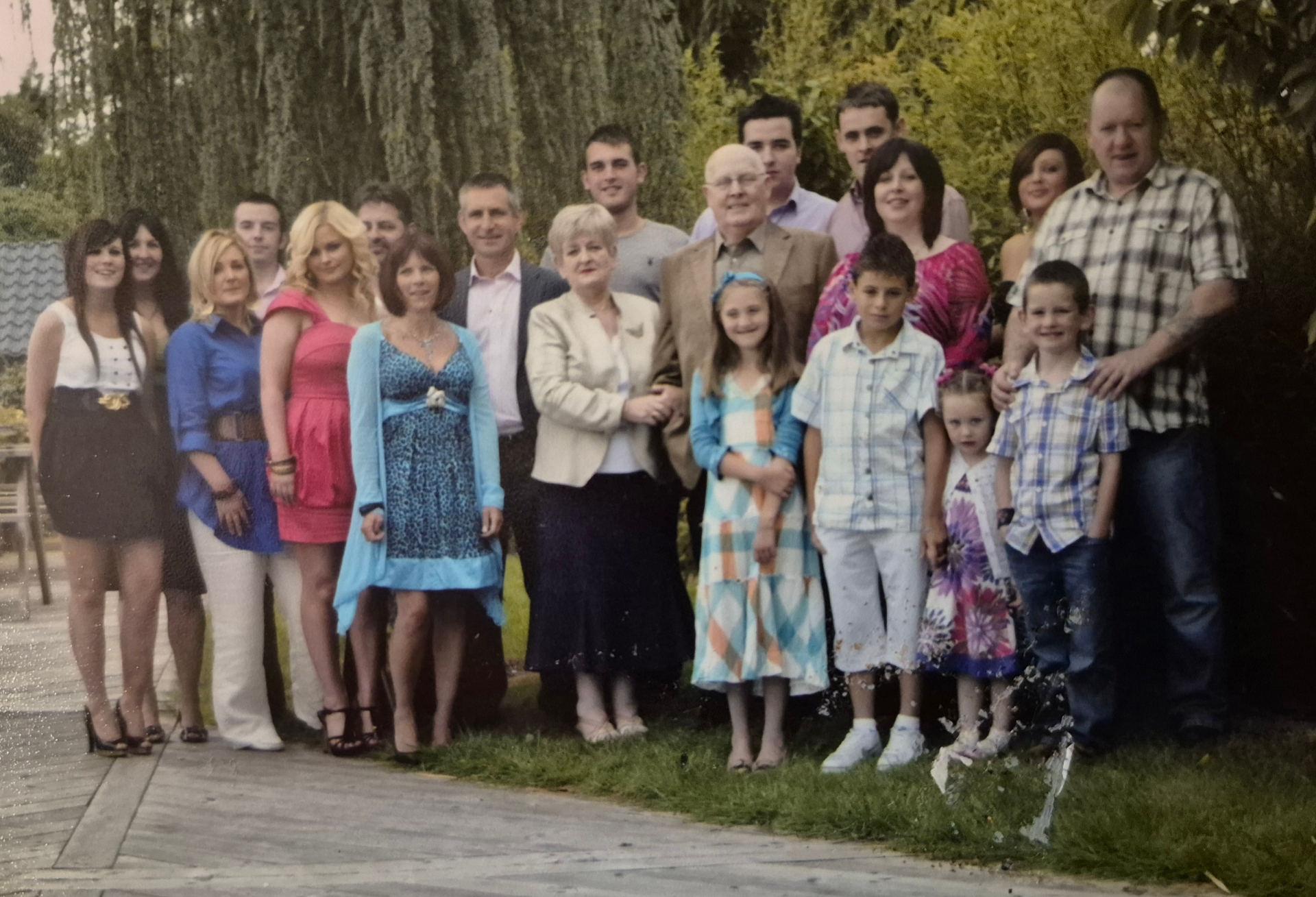PICTURED: The Kelly clan gathered for Vince and Eileen's wedding anniversary in 2009. My dad David is pictured sixth from the left. My aunty Una is pictured second from the left.