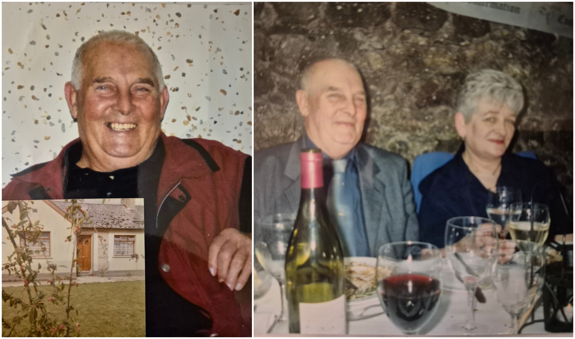 ABOVE: My granny and grandad Kelly - Vince and Eileen - and their old house in Clonagh, Co Kildare