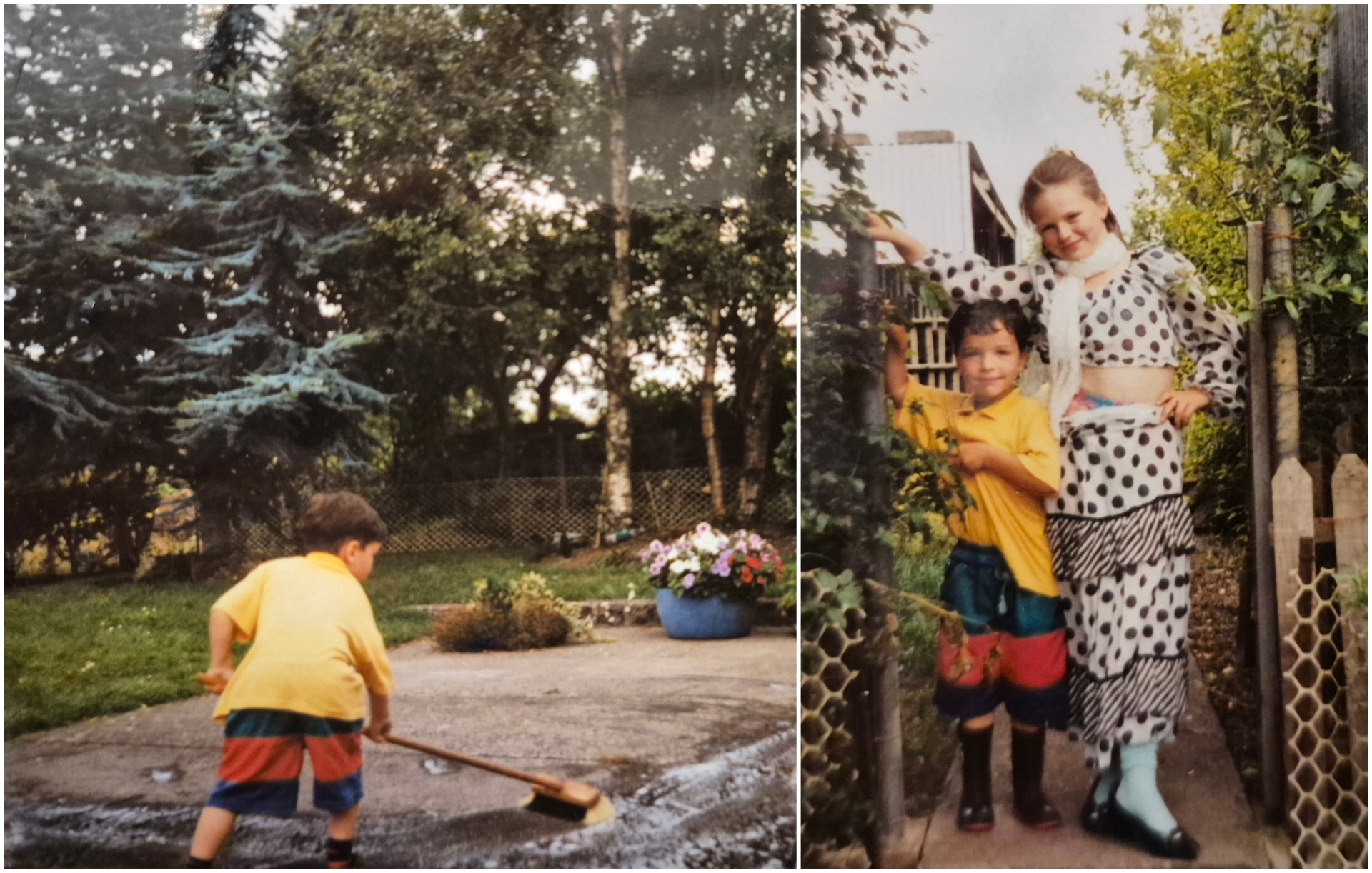 PICTURED: Me sweeping the yard in Clonagh and my sister Arlene and I on one of many visits there