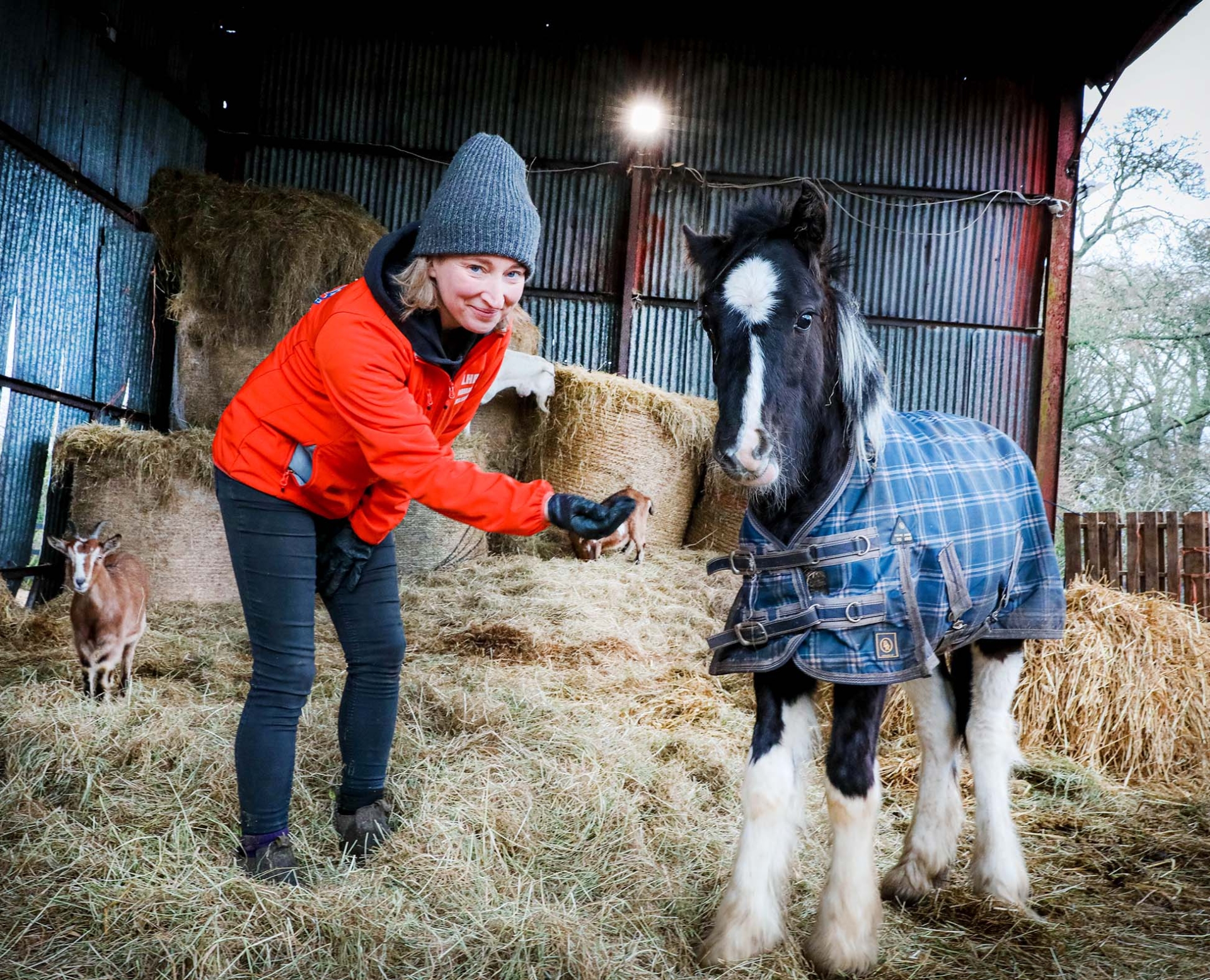 The shelter takes in horses, donkeys, goats, pigs, cats and dogs.