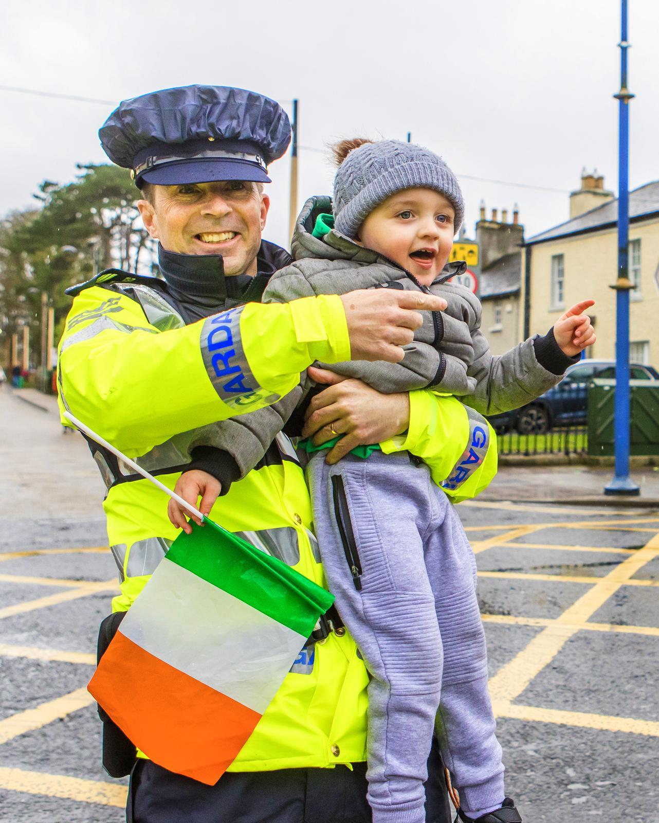 Dylan Nowak assists Sergeant Garda Jack Swan with traffic duties in Maynooth town