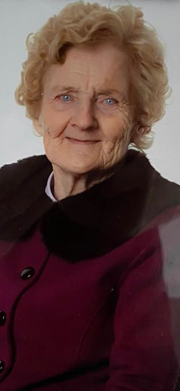 Deeply regretted by her loving daughters Carmel, Mary, Phil, Angela, Teresa and Rosaleen, sons Michael, Gerard, Thomas, Paul and John, sister Carmel, brother Freddie, sons-in-law, daughters-in-law, grandchildren, great-grandchildren, nieces, nephews, relatives and friends.