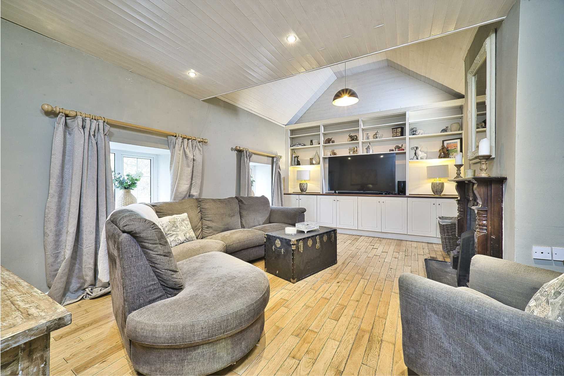 It’s open plan and modern interior compliments the original character of the home, which dates back to the 1900’s. Furnished with barn door, bespoke kitchen, original mezzanine, fireplaces, marble, hardwood worktops and wood floors, window seating and a wood pellet burner are few of the finishing touches that elevate this beautiful home.