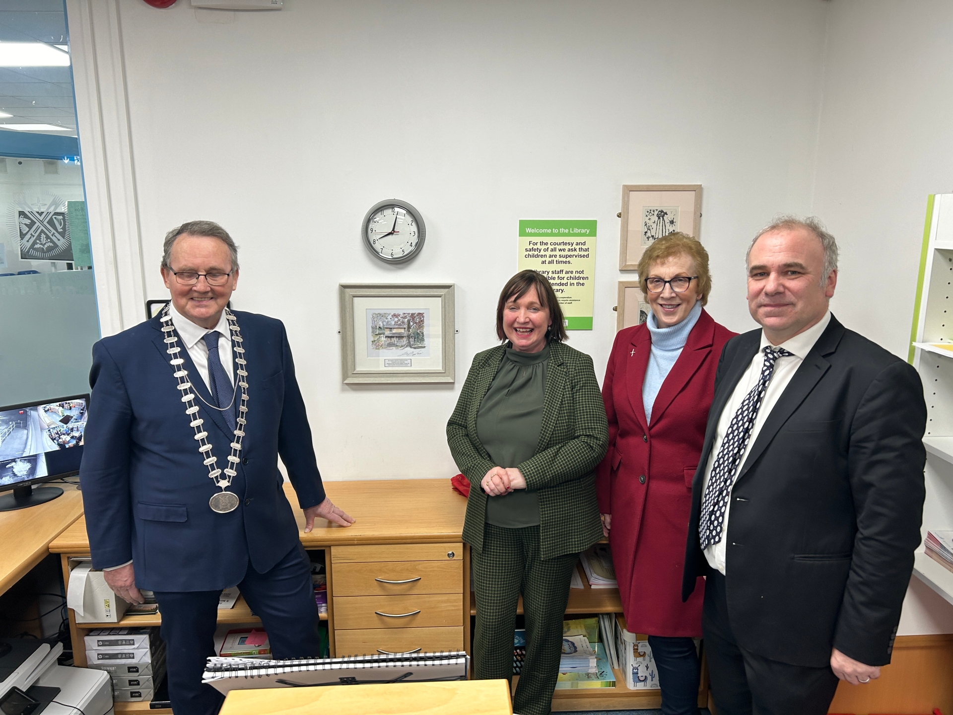 Mayor Noel Heavey, Senator Fiona O'Loughlin, Councillor Anne Connolly and Mark Stafford at the unveiling of the painting last night