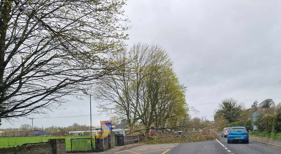 Trees are down and blocking roads in areas such as Mondello, Kilcullen, Brannockstown and Kildangan.