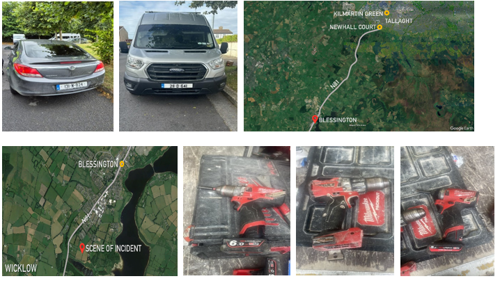 The suspects then drove these vehicles in convoy, exiting the property, driving through Blessington village Main Street, and continuing on the N81 in the Dublin direction.
