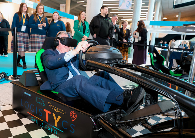 Minister of State, Seán Canney, had a blast with Kildare Transition Year students at the Logistic TY skills expedition on Thursday 3rd April 2025 at the Curragh Racecourse, Co. Kildare.