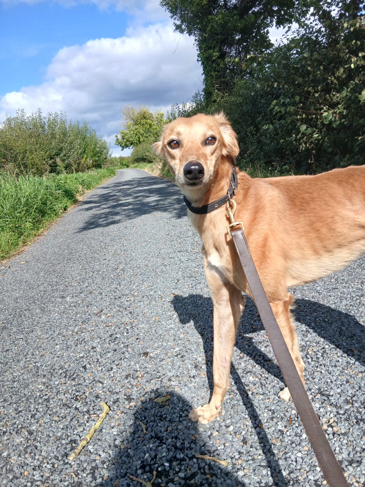 He is a Saluki Cross who can be quite shy when meeting new people and can take a while to come around so he will need an understanding person to work with him on his journey of trusting.