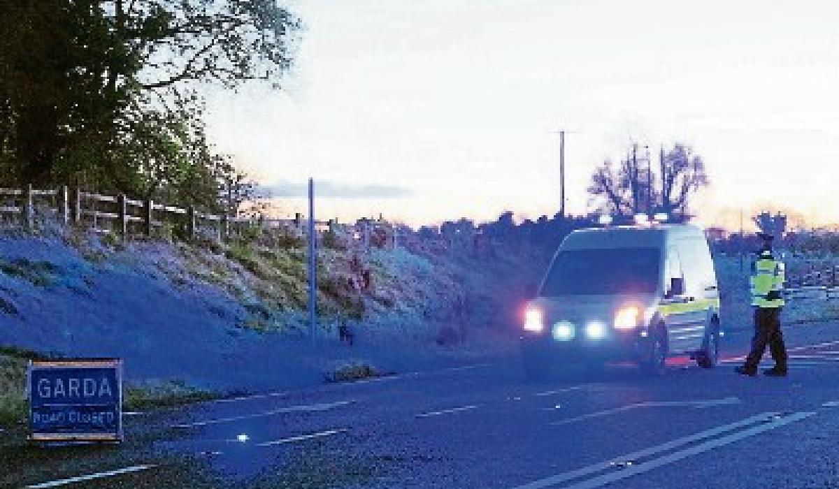 Gardai blocked off the road near the crash scene yesterday afternoon. Photo: Dessie Boland.