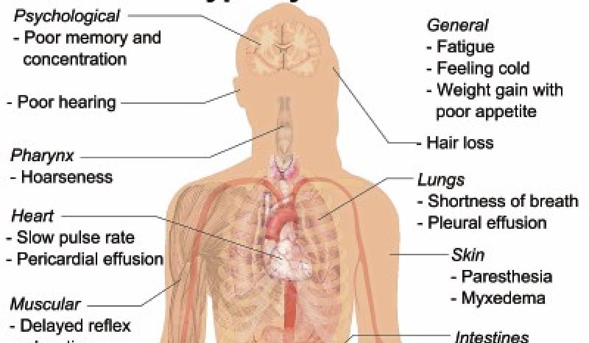 Hypothyroidism is a condition in which the body doesn’t make enough of the thyroid hormone thyroxine (T4) . Thyroid hormones help control growth, cell repair, and metabolism. As a result, people with hypothyroidism may experience the symptoms above, among many other symptoms. However many of the symptoms can easily be confused for other conditions and as the symptoms generally appear slowly, sometimes over many years, you may just think your symptoms are a result of growing older! If hypothyroidism is left untreated more serious symptoms may start to appear, such as a change in voice (hoarseness) a slow heart rate, anaemia and hearing loss to name a few.