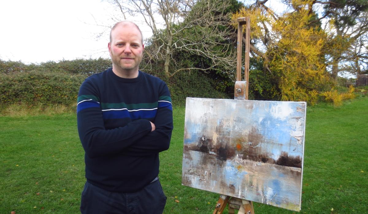 Derek Fitzpatrick with his painting Kisses the Horizon