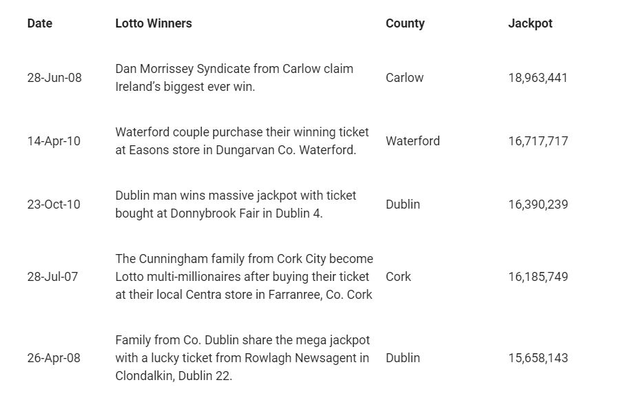 Only 26 jackpots in excess of €10 million have ever been won in the history of the Lotto game.