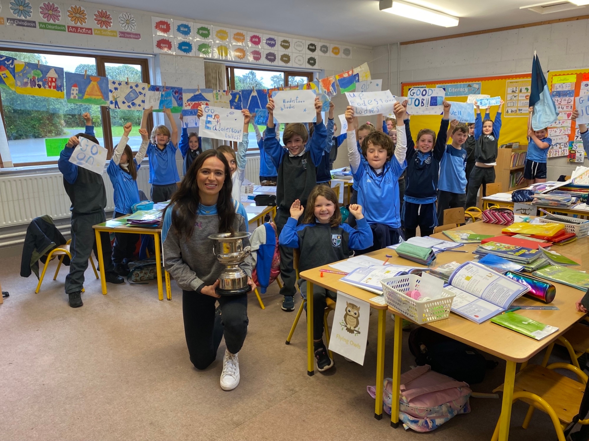 "We congratulate and are proud to welcome our past pupils Grace Clifford and Rose Mernagh to the school today with the Cup. The girls and their teammates are fantastic role models for the children in the school and we are delighted that they took time out to visit us today.