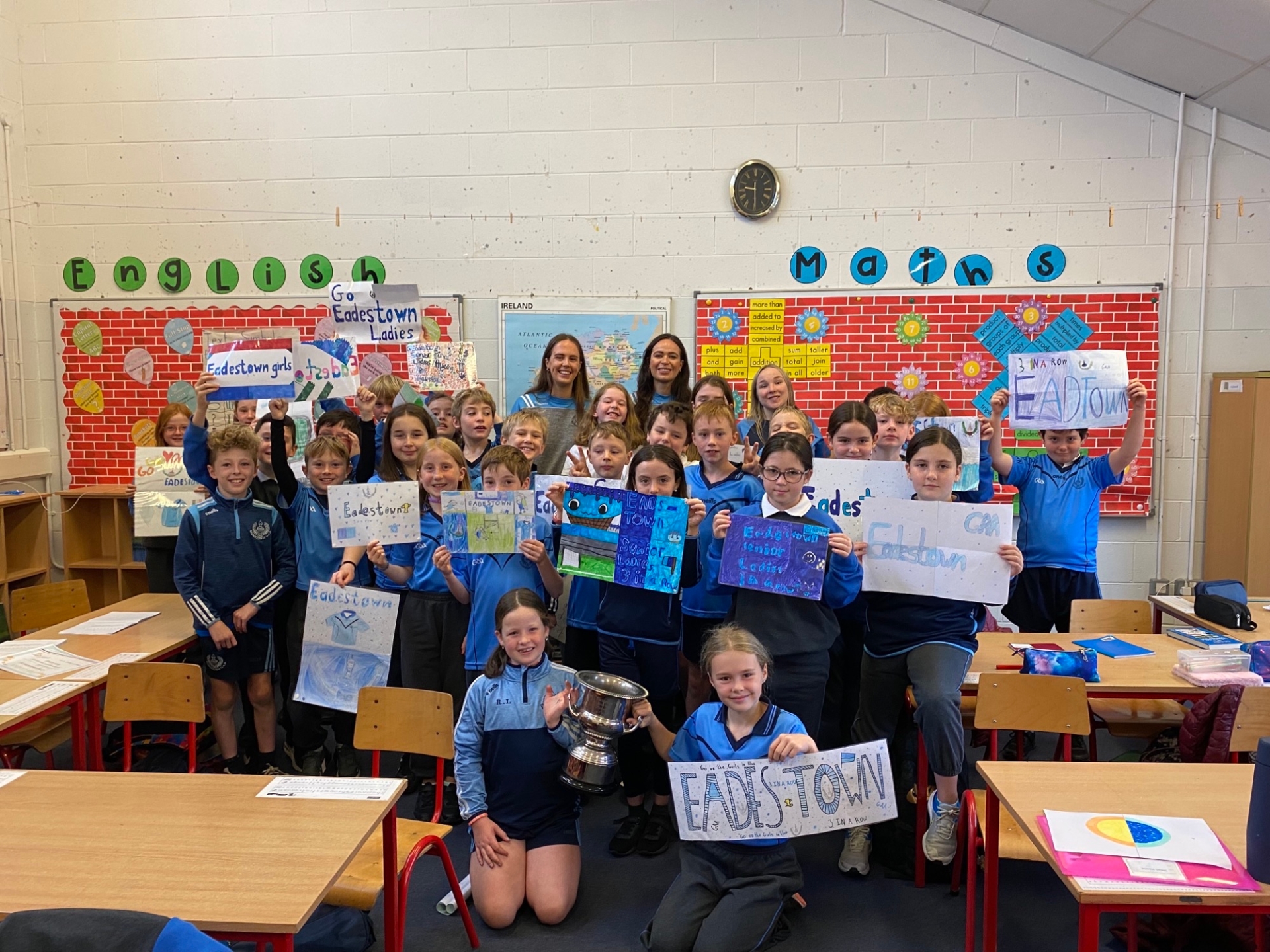"The children have been looking forward all week to meeting the players and many have come to school today dressed in their Eadestown Club colours. The school was very well represented on the three-in-a-row winning team with a majority of the Eadestown Senior LGFA players past pupils of Rathmore N.S."