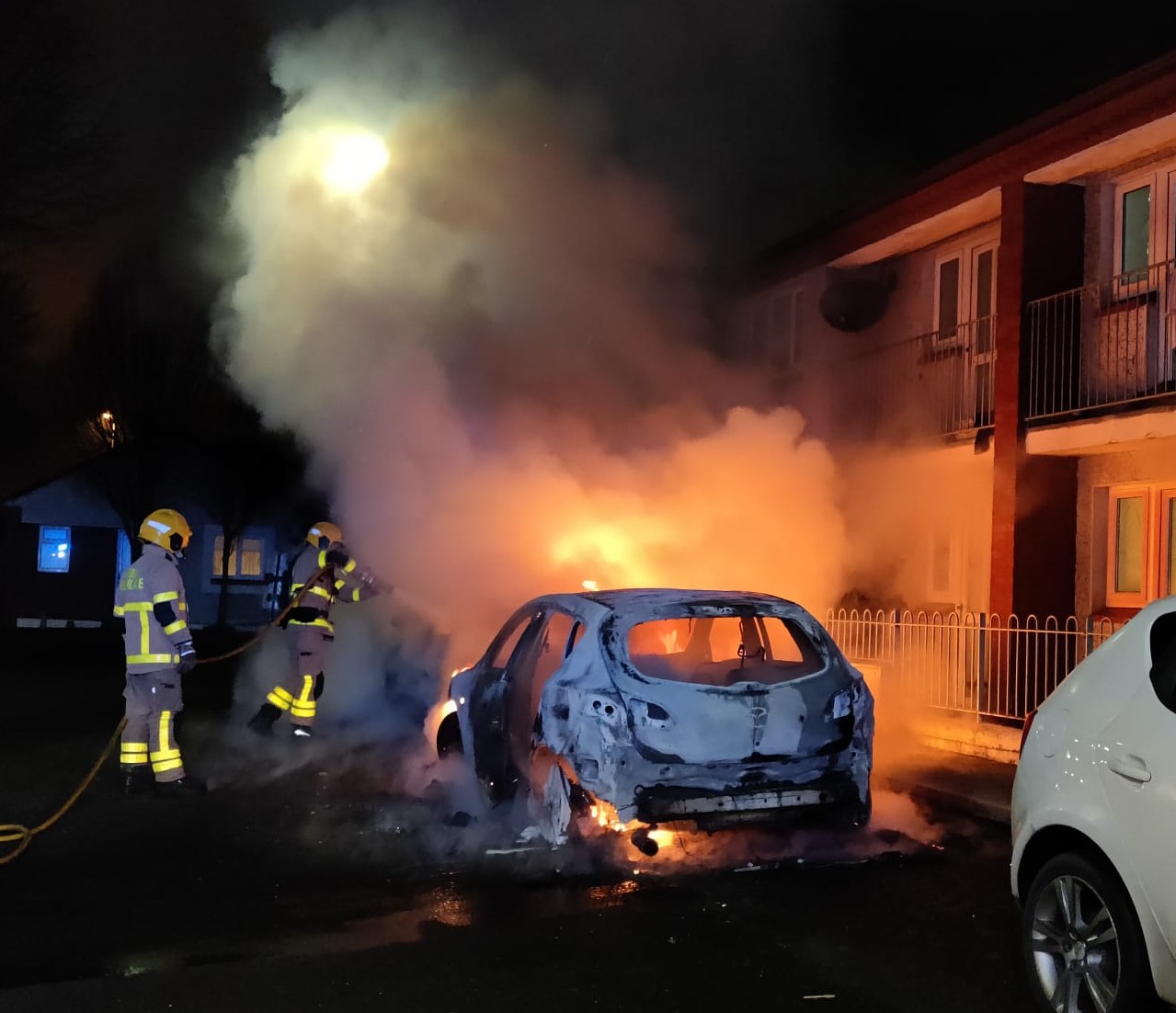 This was the scene as firefighters were called to two vehicles alight in the Clondalkin area off the N7 on Sunday night.