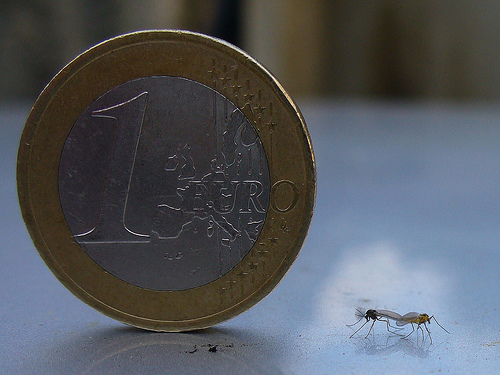 Two durty feckin' midges beside a one euro coin (for perspective).