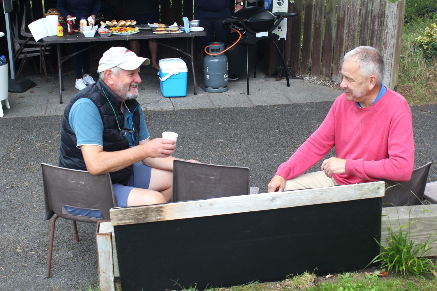 Relaxing after a testing round- John Moore & Eddie Shanley