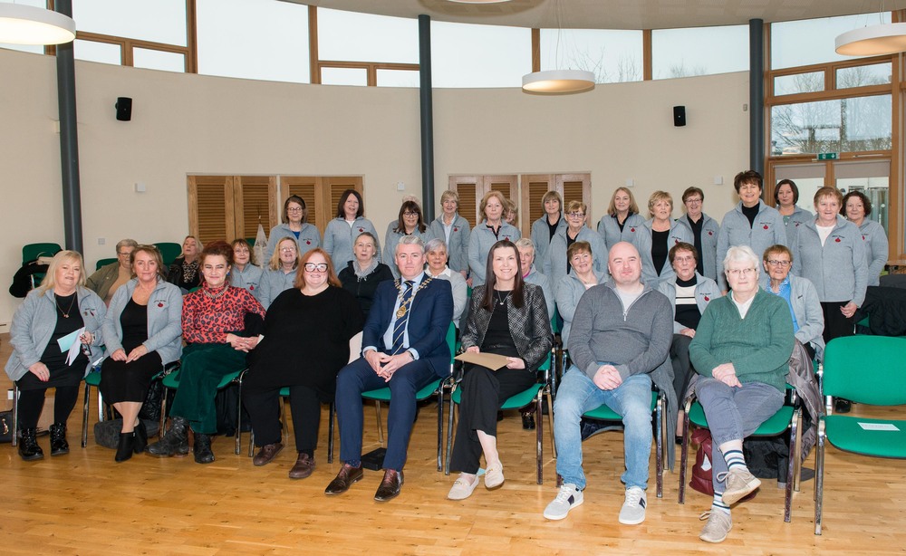 Members of Mná Beoga: Geraldine Smyth (Artist), Cllr Suzanne Doyle, Kevin Duffy (Mayor of Kildare), and Terrie Devlin (Kildare County Council).
