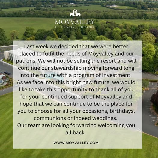 But a statement issued by Moyvalley Hotel confirmed it will not be sold and it will be business as usual going forward for the popular venue.