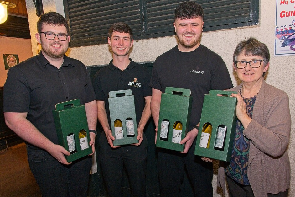 Runner-up prize winners were the Manzors team: Luke Gannon, Sean Malone, Adam Farrell pictured with Mary Dunne, Chairperson of Clane St Patrick’s Day Festival.