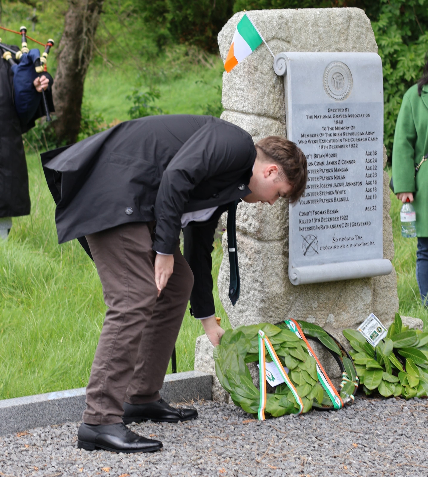 The event included the reading of the final letters of the executed men, the 1916 Proclamation, and a wreath-laying ceremony performed by James Stokes, the recently appointed SF Area Representative for the Newbridge LEA, on behalf of the Grey Abbey Martyrs Cumann.