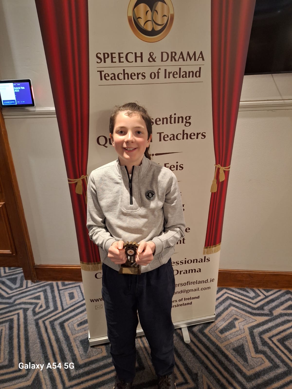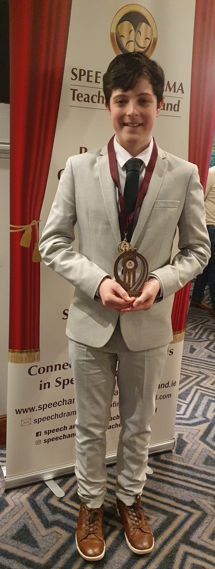 Luke Ryan performed the poem The New Boy by John Walsh earning the gold medal in the mixed poetry 13/14 age competition while his brother, Kyle Ryan, gave a performance of the poem “Excuses, Excuses” by Gareth Owen winning the top spot in the boys poetry 12 final. Grace Smyth gave a portrayal of Pollyanna winning gold in the solo drama 11 category, with Fiach Fogarty achieving first place in the boys 7 poetry competition.