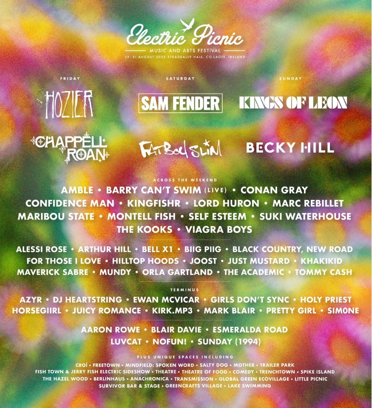 Electric Picnic is set to light up Stradbally Estate once again this August with an unmissable lineup including headline performances from Hozier, Chappell Roan, Sam Fender, Fatboy Slim, Kings of Leon and Becky Hill.