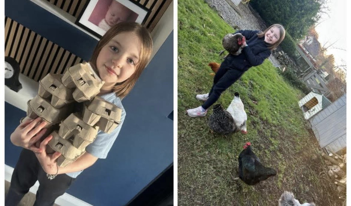PICTURED: Rosie (8) supplying chicken eggs to the Cake Bake Shed