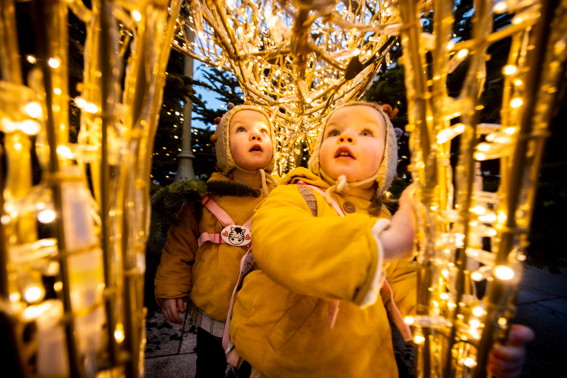 Penelope and Imogen Harper (2) enjoying the Christmas lights at the launch. Picture: Andres Poveda