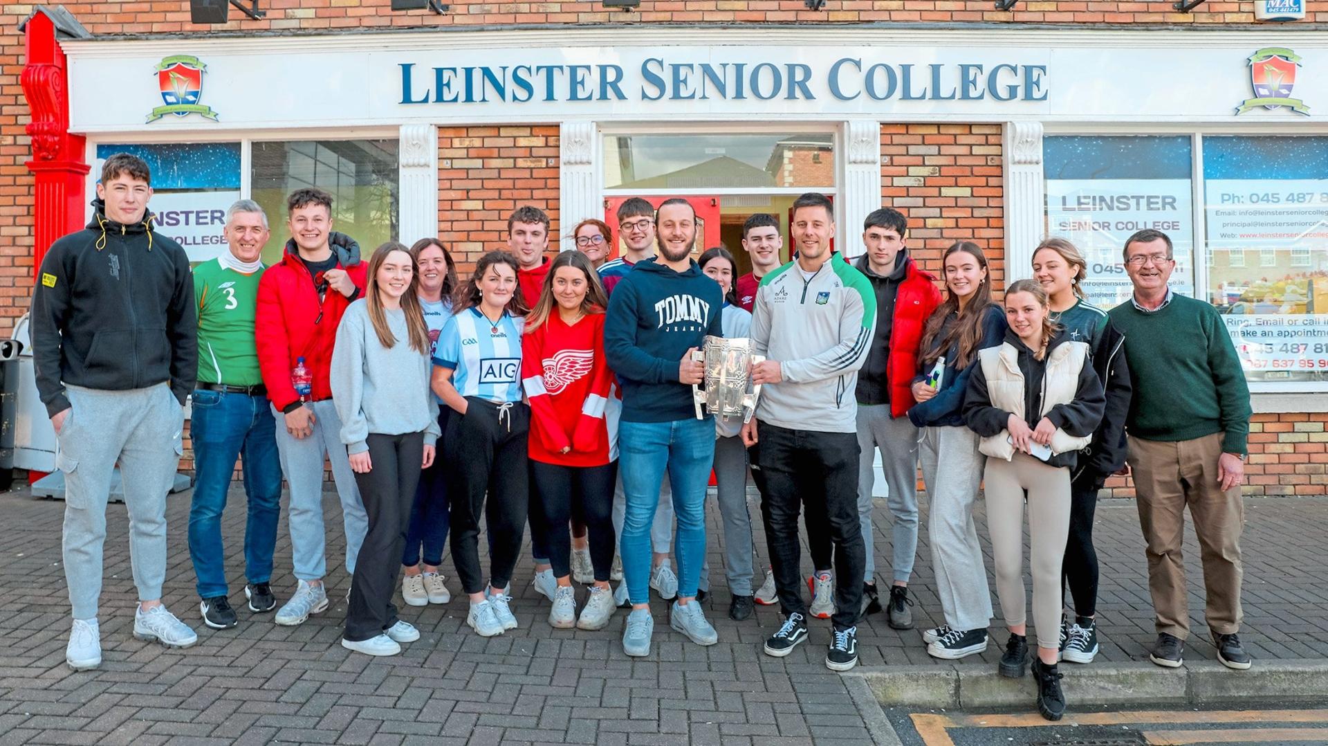 Tom and Dan Morrissey with students and teachers from Leinster Senior College