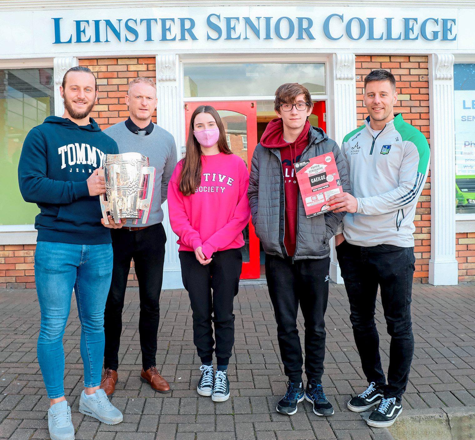 Karl Hegarty (Principal), Tom Morrissey and Dan Morrissey alongside students Killian Fitzgerald and Roisin O'Mahoney