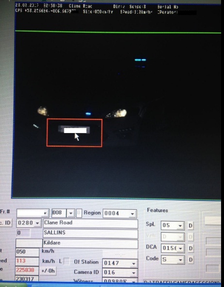 Naas Traffic Corp's robot speed van detected the car travelling at 121km/h in a 50km/h zone.