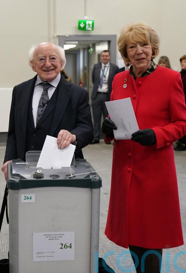 Irish president Michael D Higgins and his wife Sabina cast their votes at their local polling station in the Phoenix Park as the leaders of smaller parties also came out early to vote.