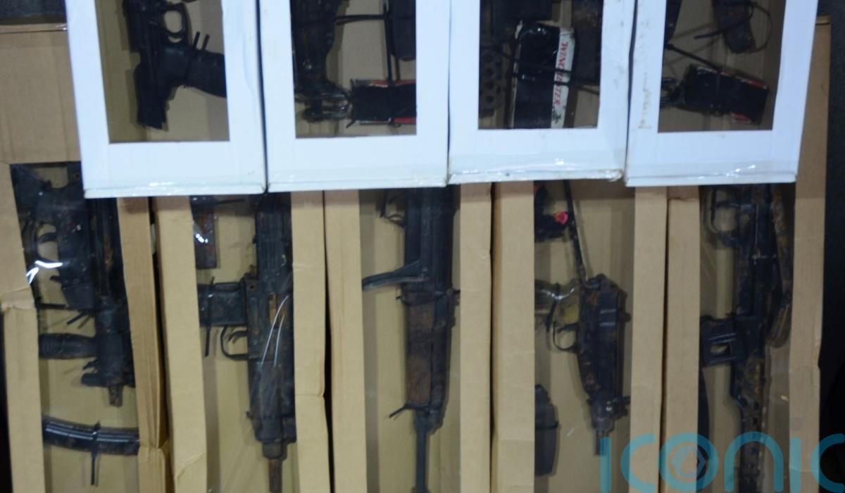 They contained seven machine guns, three automatic handguns, an assault rifle and ammunition.