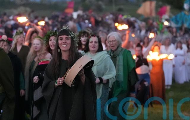 Spectators gather for ancient Celtic fire procession that welcomes summer