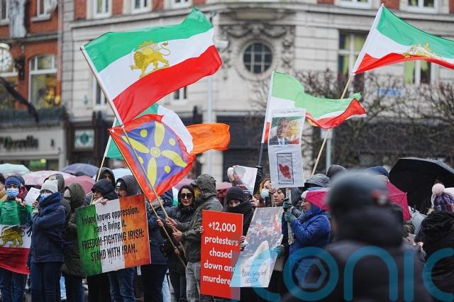 Protesters demanding the expulsion of Iranian diplomats gathered on Dublin’s O’Connell Street on Saturday.