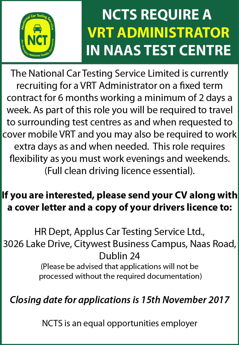 An exciting unique opportunity has arisen at the National Car Testing (NCT) in Naas.