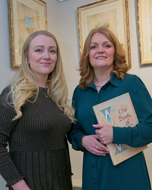 Pictured: Denise McNulty and Elaine Healy, both daughters of Artist/Calligrapher Josephine Hardiman, at the launch.